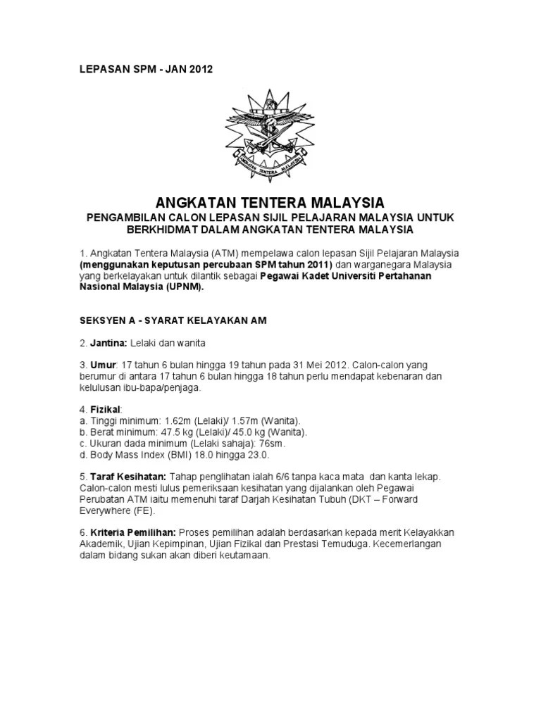Pengambilan perajurit muda tldm siri 223 22 bagi lepasan spm svm lelaki. Perhatian lepasan spm unit kemasukan rekod unikop facebook .